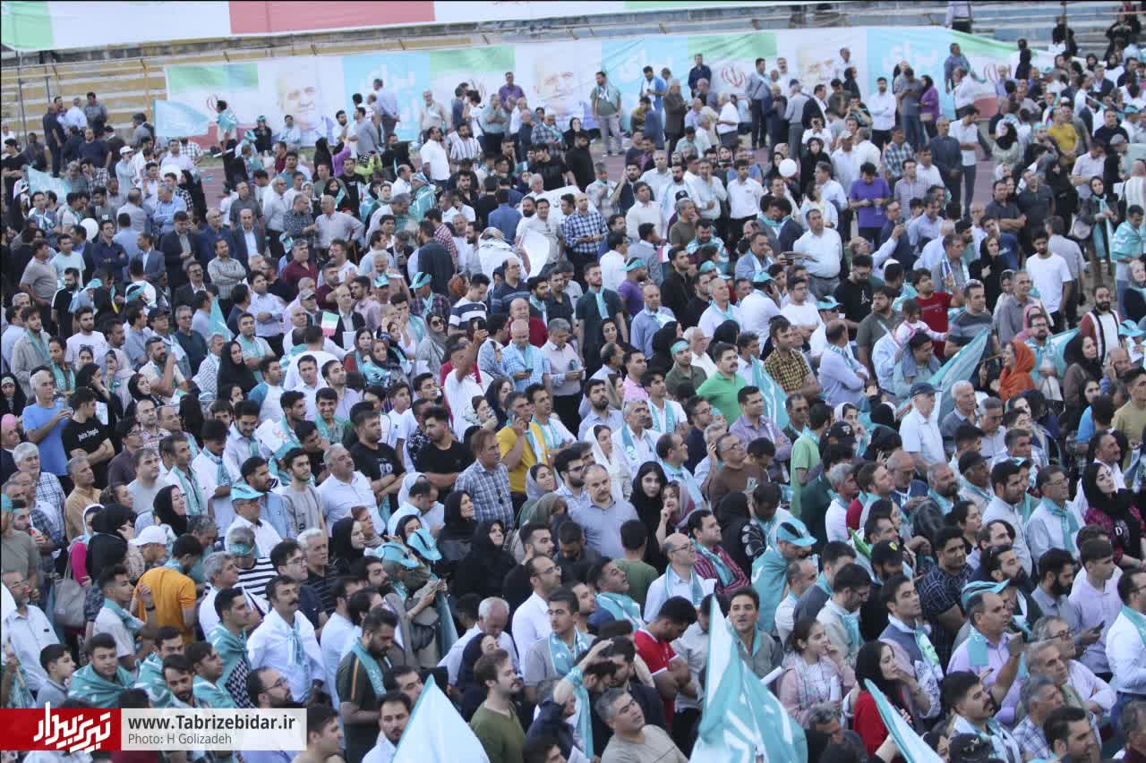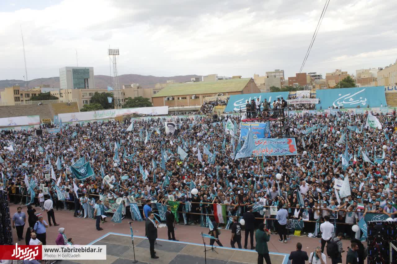 میتینگ انتخاباتی پزشکیان در تبریز میتینگ انتخاباتی پزشکیان عصر چهارشنبه در استادیوم تختی تبریز با حضور هوادارانش برگزار شد.