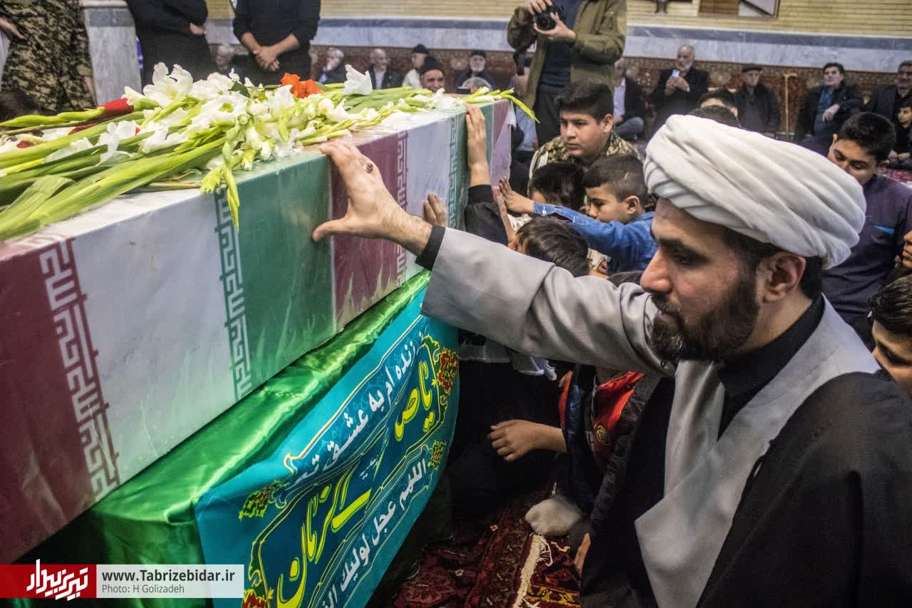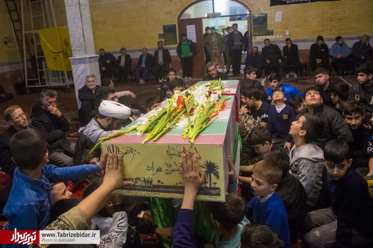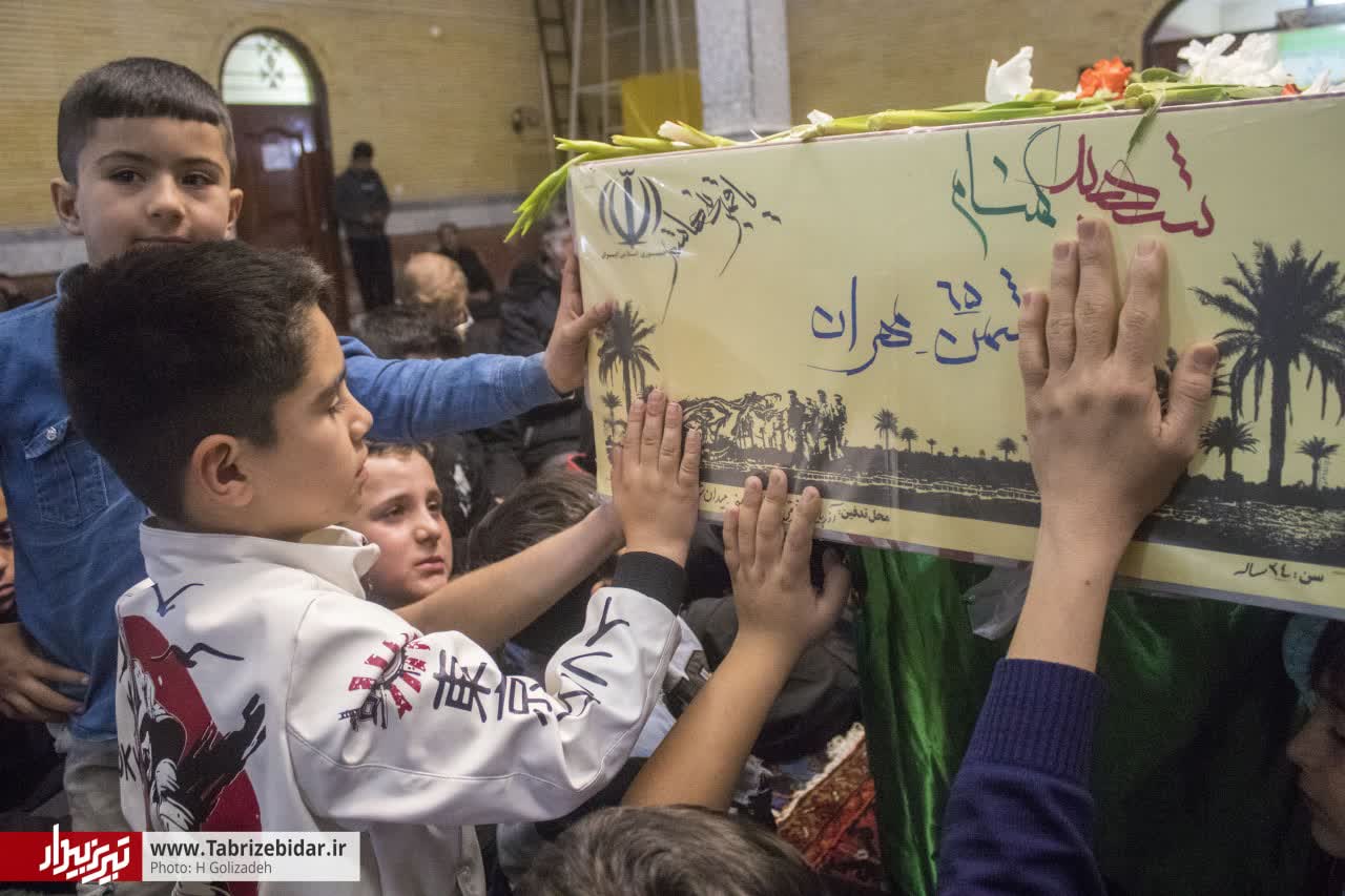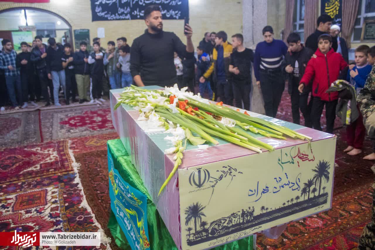 مراسم وداع با پیکر مطهر شهید گمنام دوران دفاع مقدس در مسجد باب الحوائج(ع) کوی بهشتی تبریز برگزار شد.