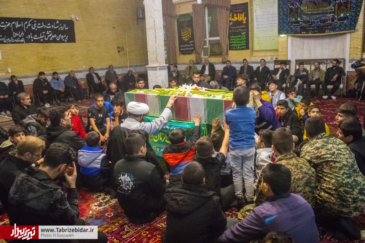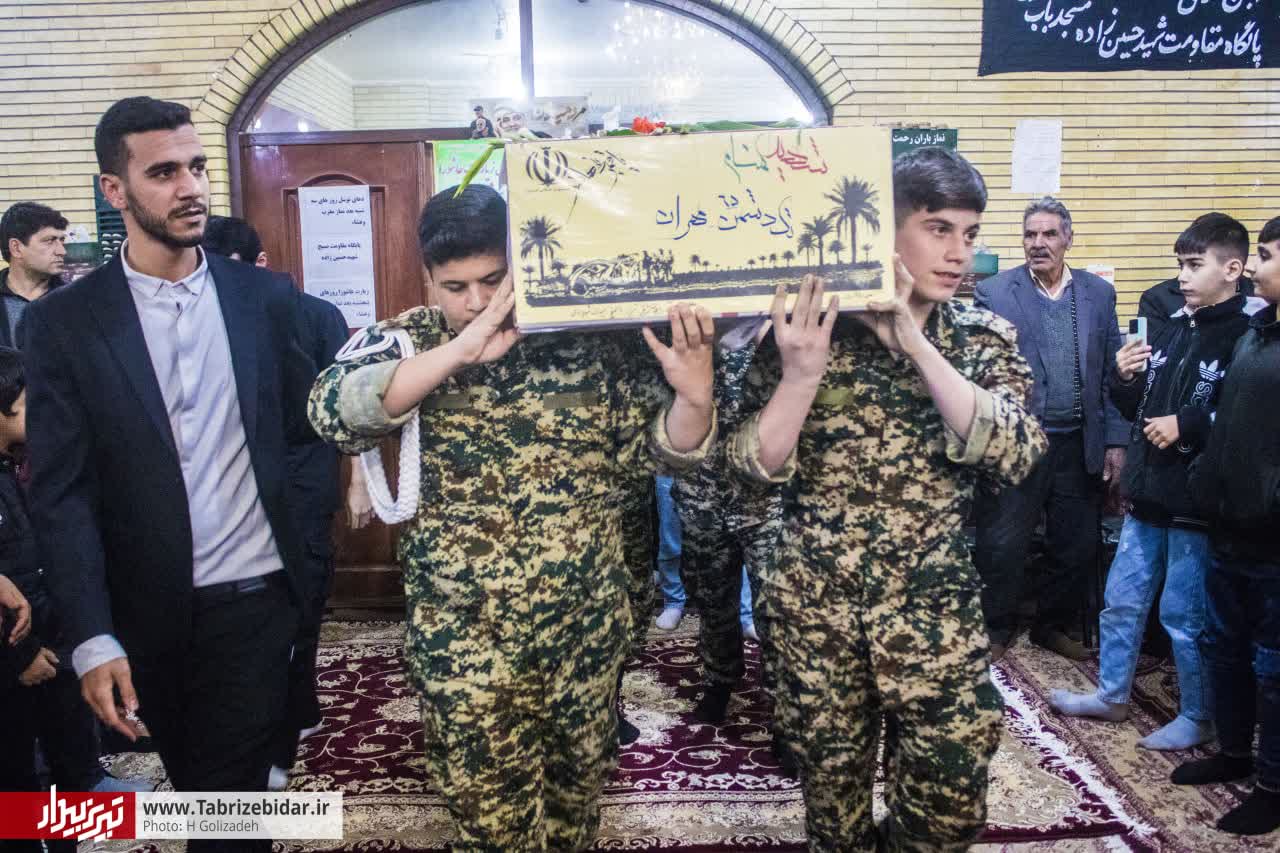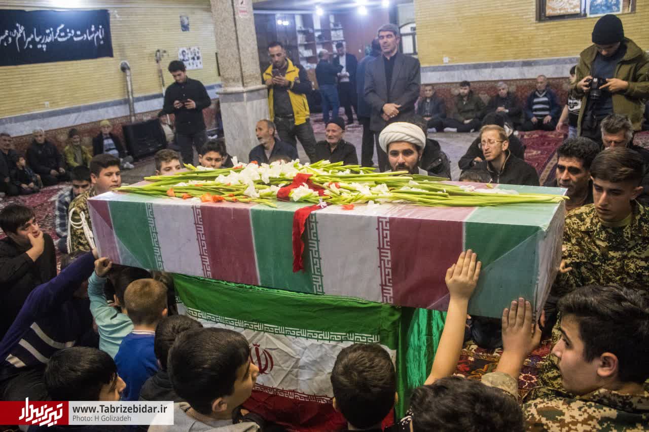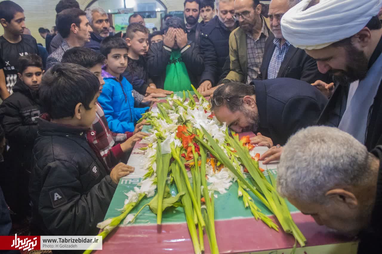 مراسم وداع با پیکر مطهر شهید گمنام دوران دفاع مقدس در مسجد باب الحوائج(ع) کوی بهشتی تبریز برگزار شد.