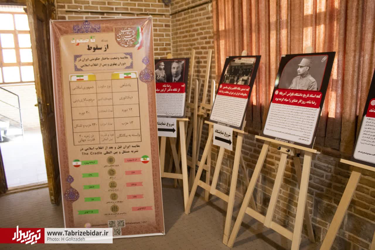 نمایشگاه «از سقوط تا صعود» با رویکرد مقابله با پروژهی تطهیرسازی دوران پهلوی و یادآوری روزگار سرتاسر خیانت، طبق مستندات تاریخی و همچنین بیان دستاوردهای انقلاب اسلامی ایران تا روز دوشنبه ۱۳ آذرماه از ساعت ۱۰ الی ۱۸ در ساختمان طوبی دانشگاه هنر اسلامی تبریز برای بازدید عموم دایر است.