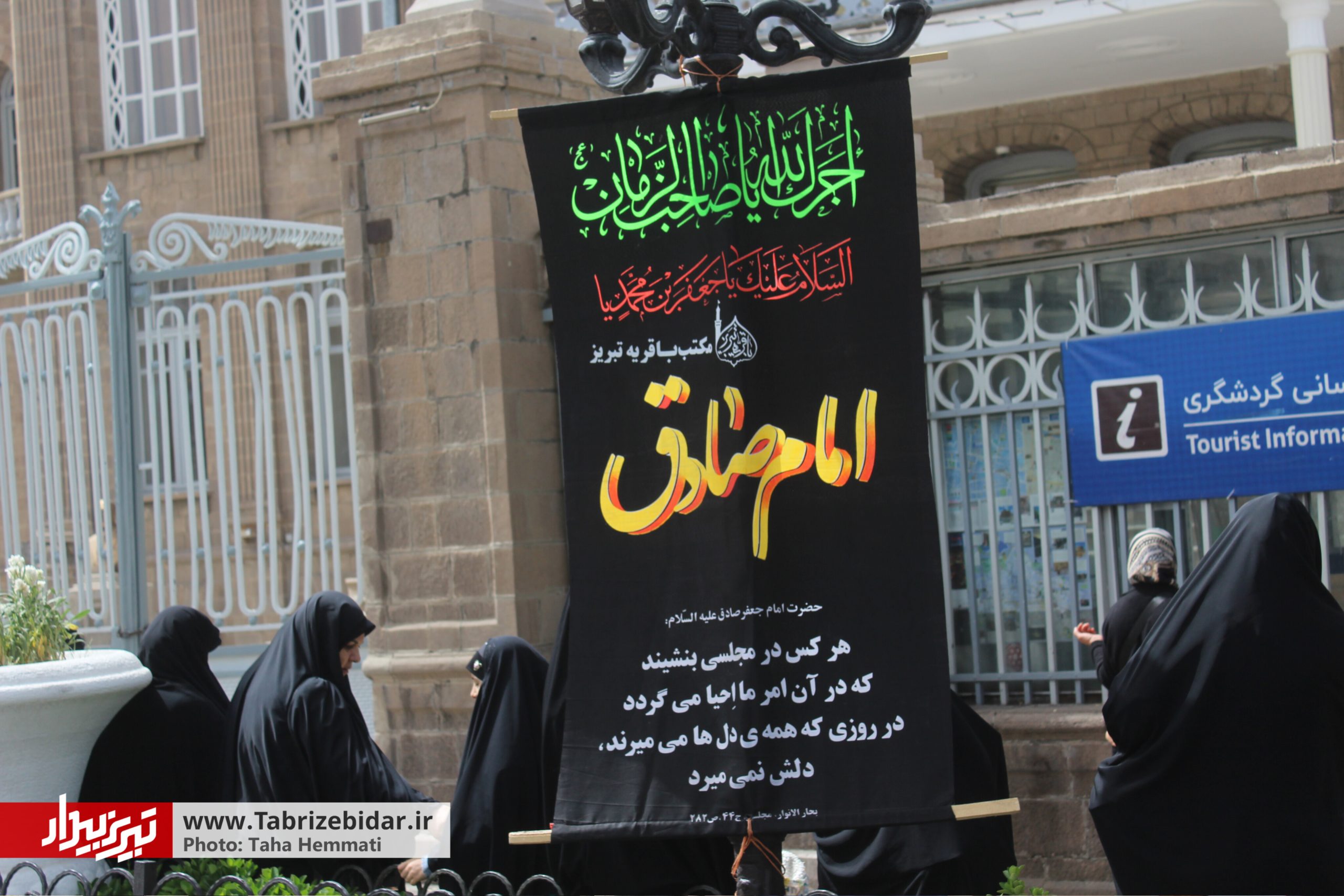 نوای ماتم صادق در تبریز همزمان با سالروز شهادت امام جعفر صادق علیه السلام مراسم عزاداری خیابانی در تبریز برگزار شد.