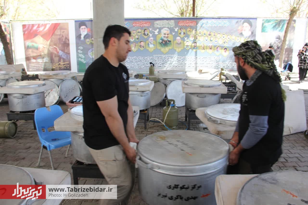 نوزدهمین مرحله پخت ۷۲ دیگ غذای گرم به نیت ۷۲ شهید دشت کربلا با عنوان «نذرواره ۷۲ خوان احسان حسینی» جهت توزیع بین نیازمندان به همت مرکز نیکوکاری شهید آقا مهدی باکری در اردوگاه الغدیر تبریز انجام شد.