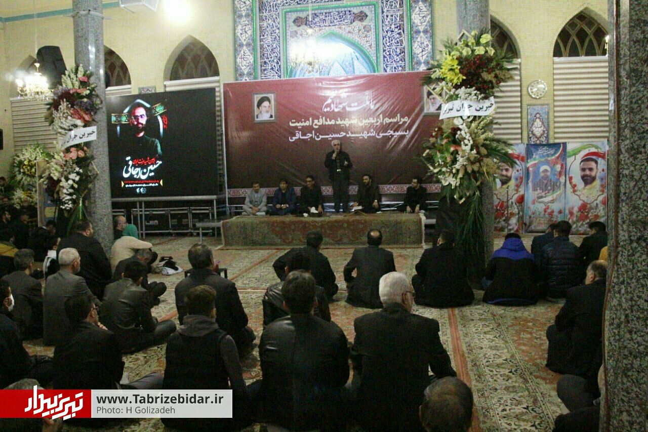 مراسم چهلمین روز شهادت بسیجی مدافع امنیت حسین اوجاقی با حضور مردم و مسئولین در مسجد نظیروندی تبریز برگزار شد.